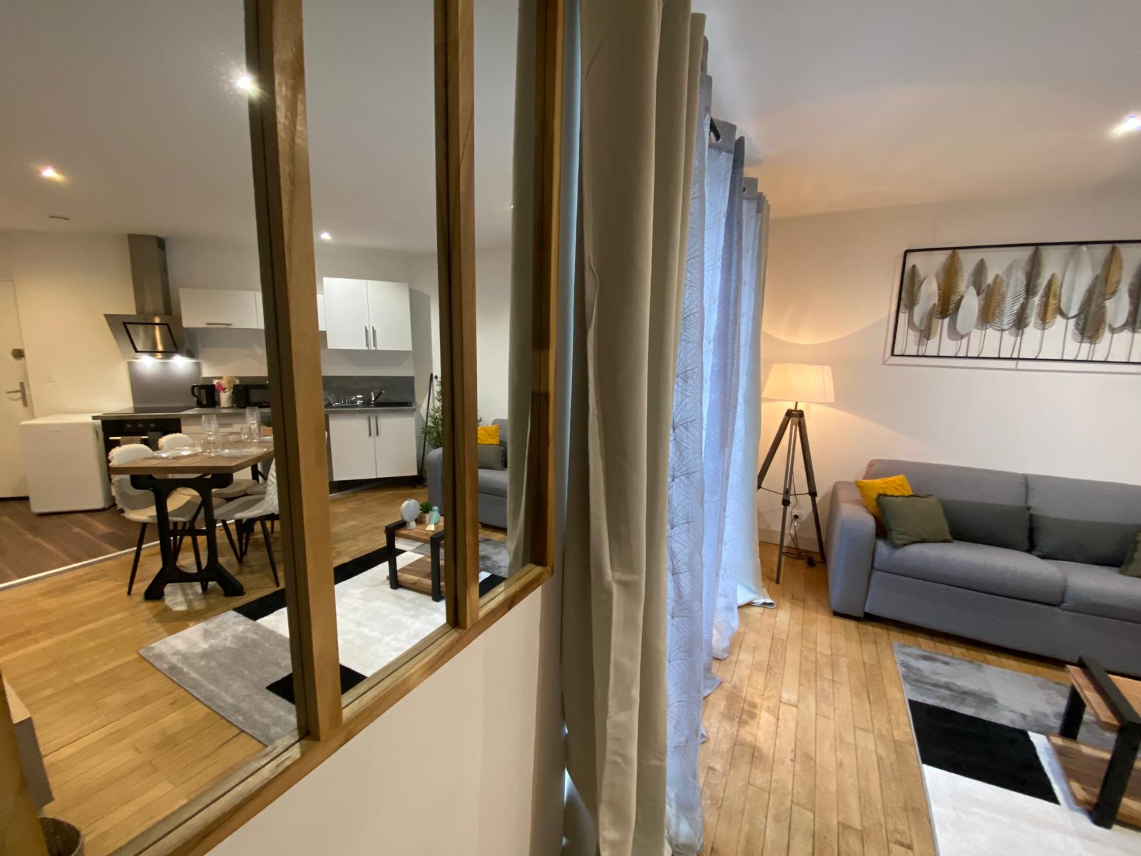 🚉 L’appartement se trouve à 3 minutes de la gare en voiture et à proximité immédiate de la Porte de Paris. Des places de parking (payantes) sont disponibles dans le quartier.